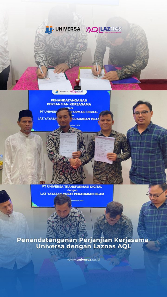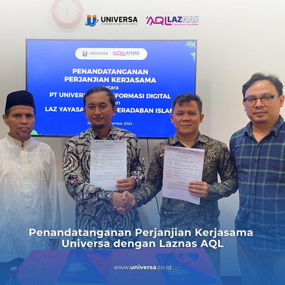 Universa dan Laznas AQL telah resmi menjalin kerjasama strategis untuk mendukung transformasi digital dan pengembangan kapasitas dalam dunia filantropi. Dalam kerjasama yang bertema “Menuntaskan Kemiskinan Melalui Program Pendidikan” ini, Universa menyediakan solusi ERP Philanthropy untuk meningkatkan efisiensi dan akuntabilitas pengelolaan filantropi, serta layanan asistansi capacity building untuk memperkuat kemampuan tim dalam melaksanakan program-program sosial.